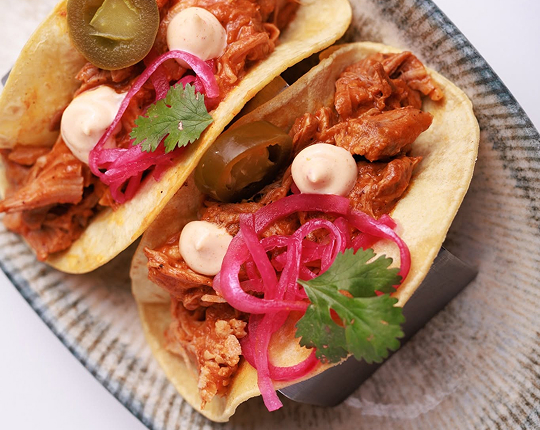 • Tacos de cochinita pibil y salsa tatemada al chipotle 13,50 €
