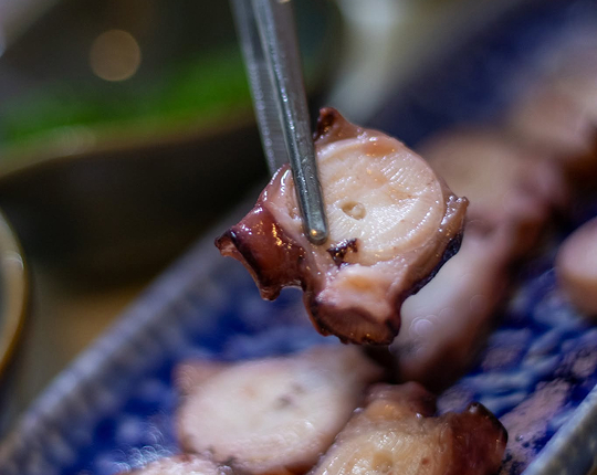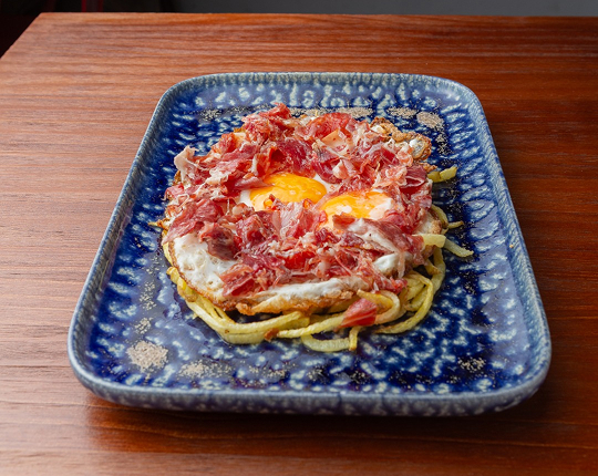 • Secreto ibérico con salsa anticucho, choco y patata paja 14 €